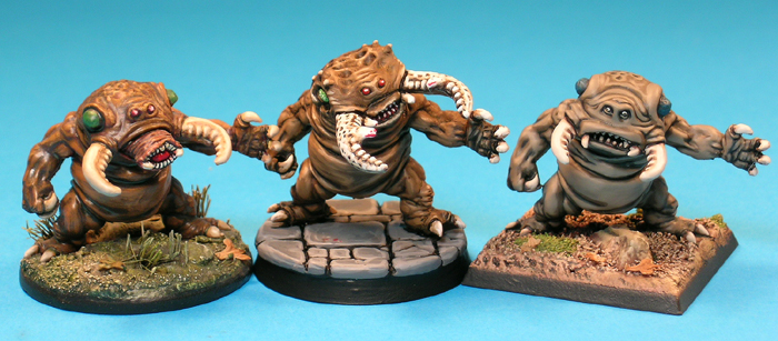 These figures represent Umber Hulks, immensely strong and dangerous beasts renowned for burrowing underground tunnels. The figures were sold one to a pack, with a seperate head and body castings. Three variants were made, with different head pieces but identical bodies.